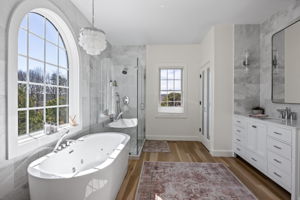 This spectacular home overlooking famed Scorton Creek has undergone a jaw-dropping transformation resulting in a daring, magazine-worthy farmhouse colonial perfect for those who love automobiles and entertaining. Exceptional waterviews from nearly every room, this home has a five bedroom septic (4 bedrooms in the house), with pre-plumbed septic line to the freestanding 2 car garage with unfinished space above - ideal for an accessory apartment. The sunny backyard can accommodate a pool and the mahogany farmer's porch is ideal to watch the pastel sunsets. Imported Irish chandeliers, custom cabinetry and tile work, gourmet kitchen with induction range, soaring ceilings, interior balcony, first floor primary with cove ceiling, and a massive list of updates and renovations make this a custom, as-new home for the discerning buyer. Four car garage for the toys that go fast and a billiard family room with waterviews for the evenings in with family and friends. Truly unmissable.